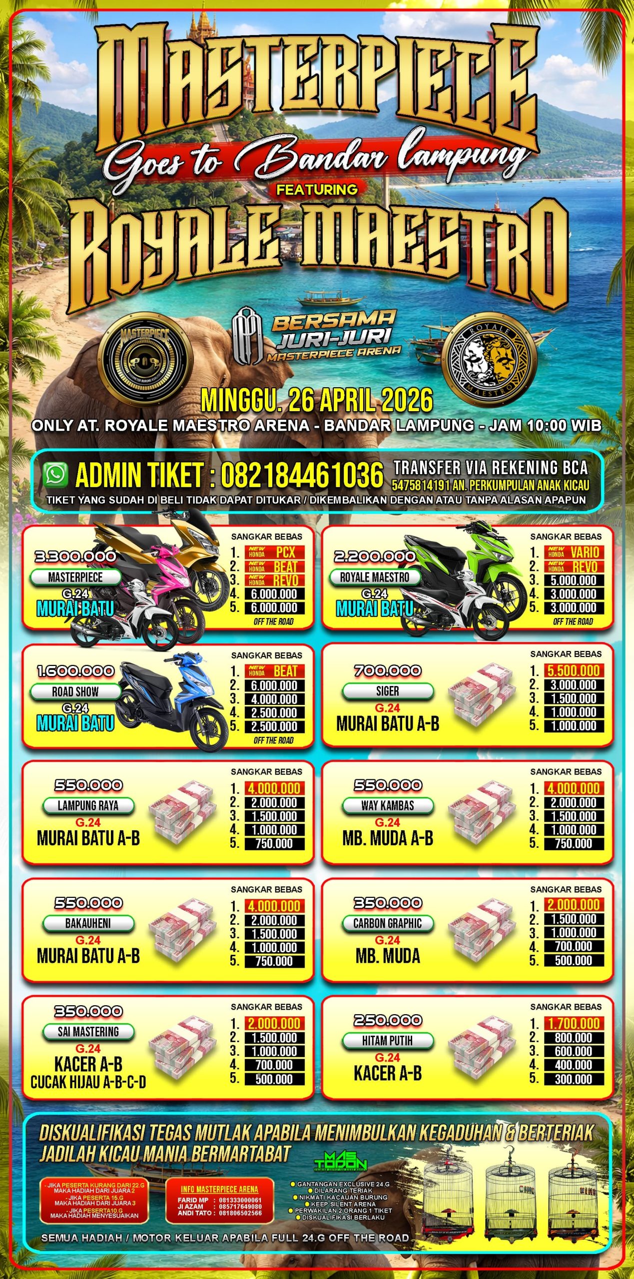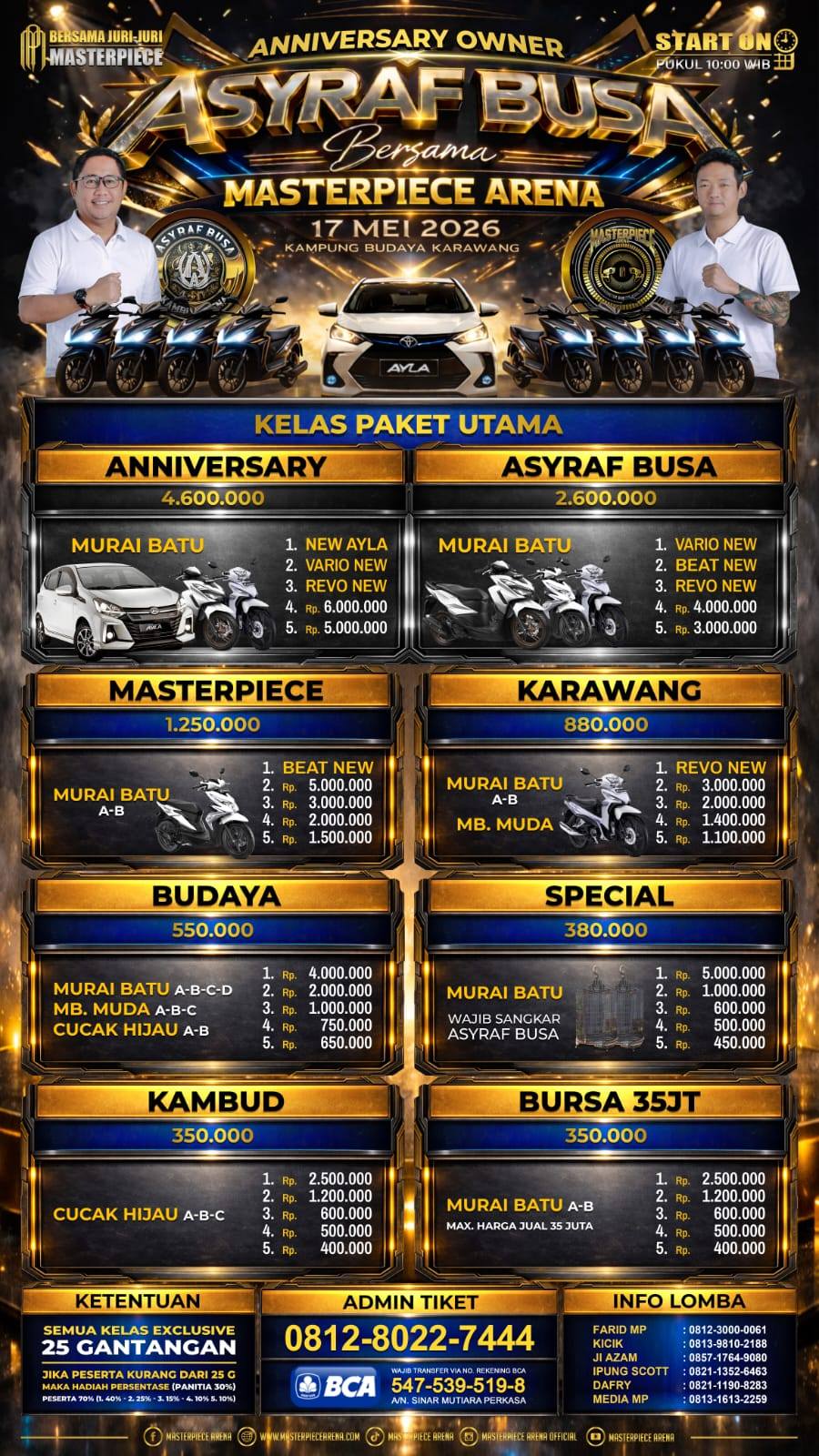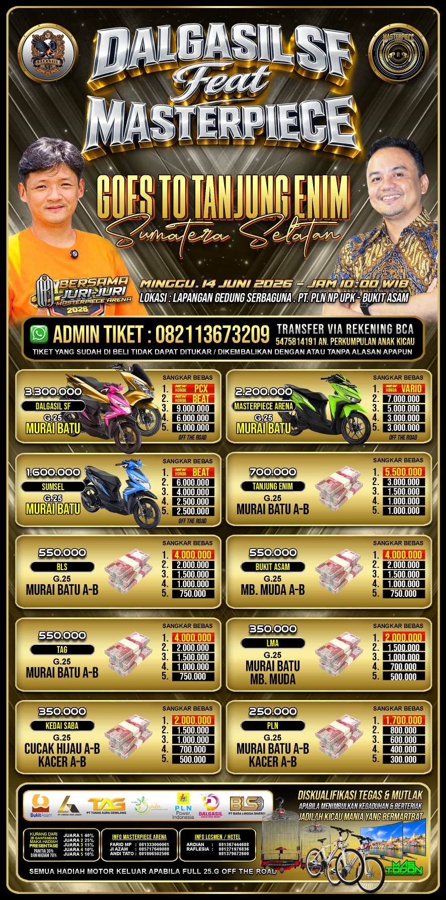 Berikut data para jawara event Masterpiece Arena. Kumpul 1 Titik Jawara Nusantara. Minggu, 15 Februari 2026, Samsat Bsd...