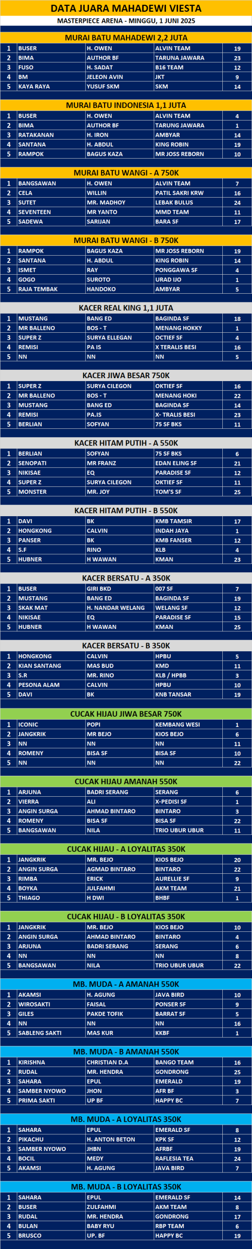MAHADEWI SUKSES NAIK TAHTA DI MASTERPIECE ARENA+DATA JUARA