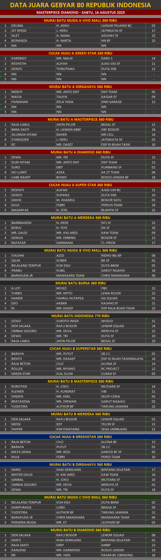 MERDEKA! Digelar Hari Sabtu, Gebyar 80th RI Masterpiece Diamond Sukses+Data Juara